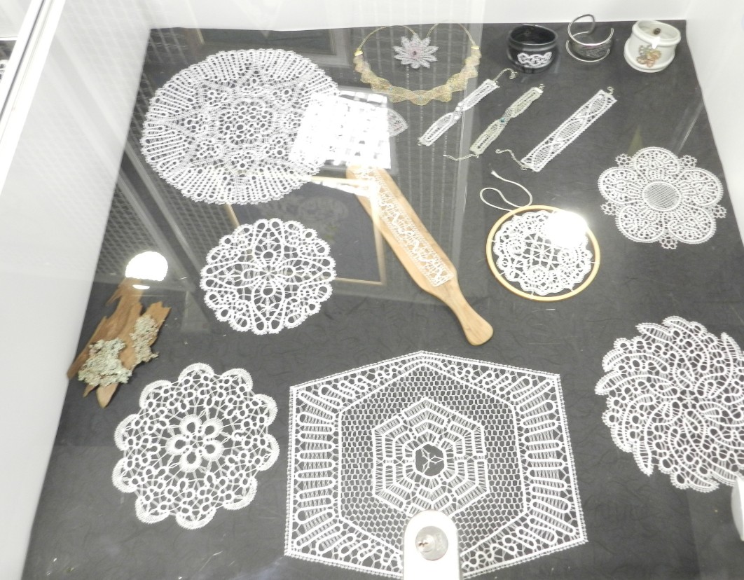 Razstavljena dela klekljarske skupine Nitke, ki so lansko leto praznovale 10-letnico, si je mogoče ogledate v času odprtosti knjižnice, in sicer