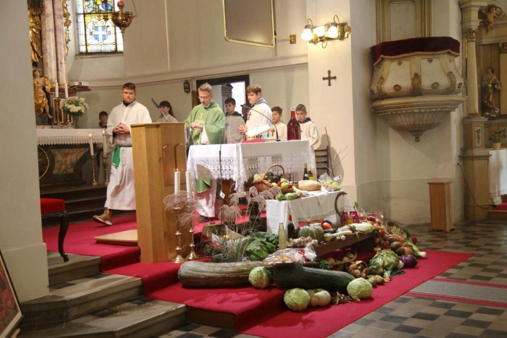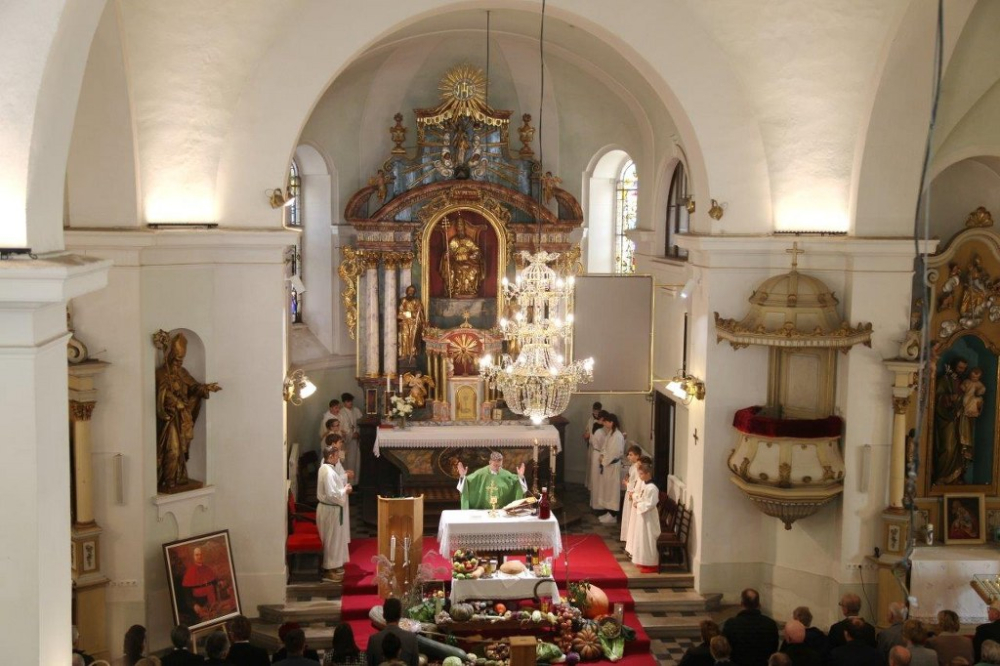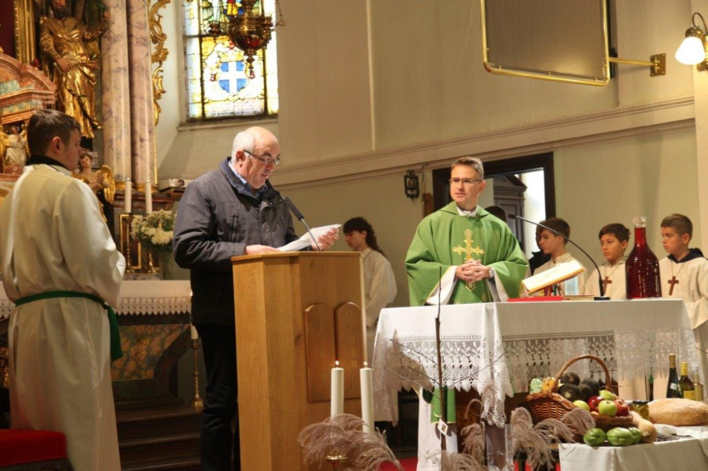 Pri maši smo lahko opazili čudovito okrasitev cerkve s pridelki letošnjega leta, za kar je poskrbel Drago Kozinc s sodelavci.
