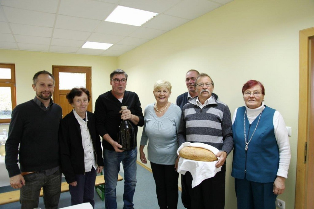 Po sv. maši se je srečanje v prijetnem vzdušju ob kosilu, ki so ga postregli člani ŽPS, in ob zvokih harmonike Antona Zavrla, nadaljevalo v Petrovem domu, kjer je domači župnik Miro Bergelj vse zbrane nagovoril.
